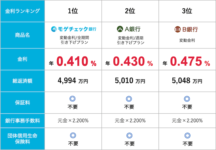 ※2 通常、No.1金利®での借り換えの場合、モゲチェックの手数料は無料です。